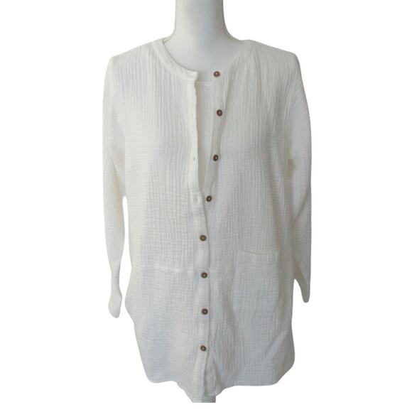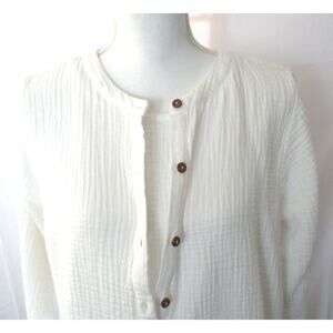 Joan Rivers Women's White Gauze Long Sleeve Button Blouse With Tank Top Size L.