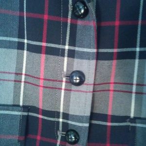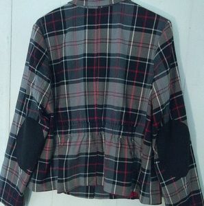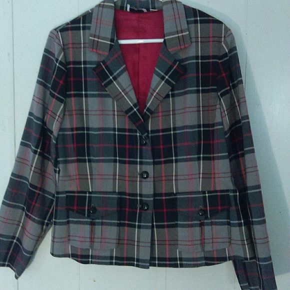 This plaid jacket by Joan Rivers has two front pockets with buttons, red satin lining and black elbow patches. WOW! How gorgeous would this look with a pair of white denim capris and red or black heels? Va-va-voom!!!