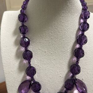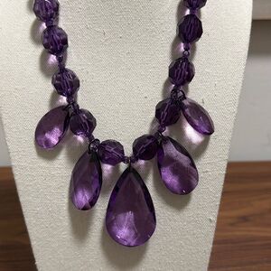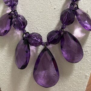 Joan Rivers Signed Vintage Purple Lucite Faceted Teardrop Bead Necklace.