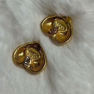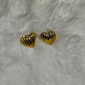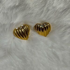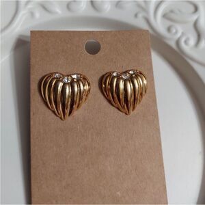 Joan River's Vintage Textured Gold Tone Ribbed Pave' Heart Earrings