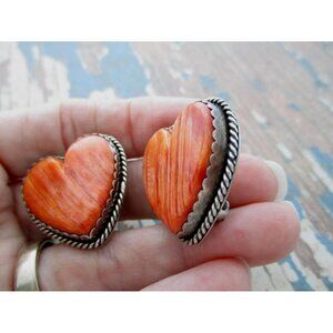 Joan Slifka Sterling Silver Spiny Oyster Heart Shaped Clip on Earrings
