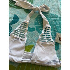 Joan Smalls Smart & Sexy White Marble Bikini Top Size XS Crochet Halter Tie NWT