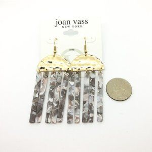 -Brand new Joan Vass acrylic resin dangle earrings with hammered gold accents