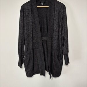 Joan Vass Black Heathered Slouchy Open Front Cardigan Sweater W/ Pockets Size 1X