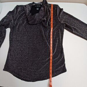 Joan Vass Black Shiny Sparkly Evening New Years Eve Night Out Top Size Large