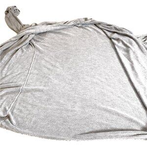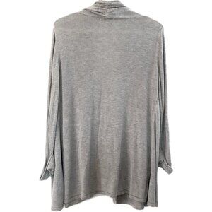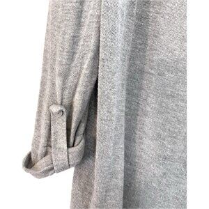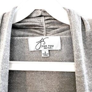 Joan Vass Cardigan Size S Open Front Light Grey Knit Sweater Roll-tab Sleeves