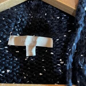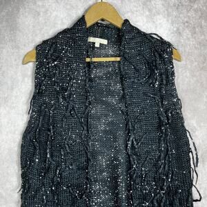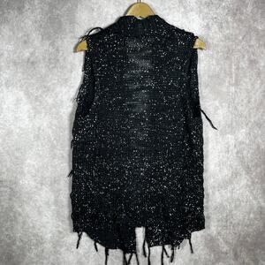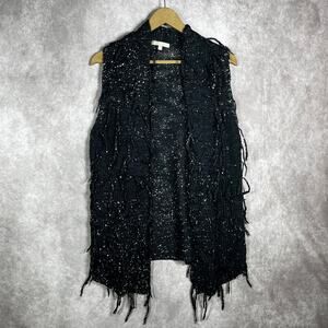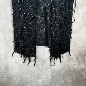 Joan Vass Cardigan Sweater Womens Large Black Knit Wool Blend Fringe Open