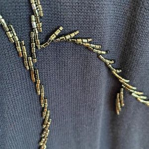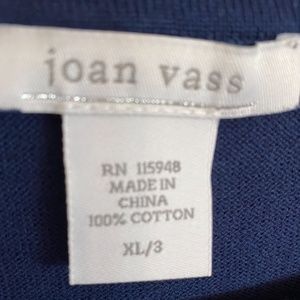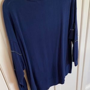 Joan Vass Size XL Navy Cotton Sweater with Embellished design. This sweater is soft, 100% cotton and in great condition.