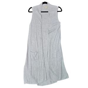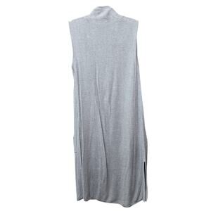 Joan Vass Knit Duster Cardigan Womens Medium Gray Sleeveless Minimalist Luxury