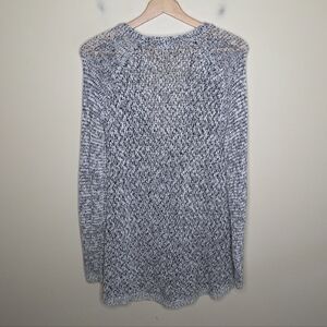 Marled black & white knit (looks gray) longer length cardigan with a v-neck and button front.
