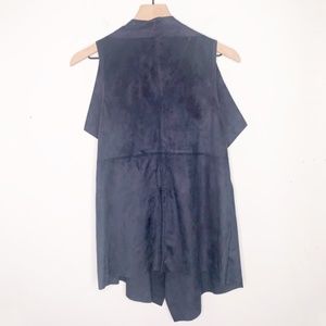 faux suede vest in navy blue color size small. New with tags and in great condition.