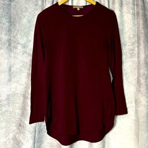 Joan Vass New York Burgundy Crew Neck Long Sleeve Tunic - Medium