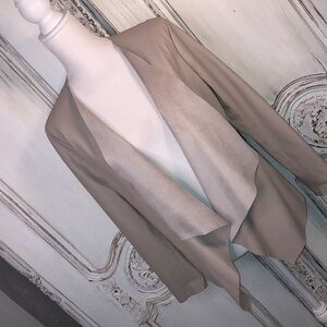 Joan Vass New York Lovely Taupe Faux Leather Waterfall Front Jacket Size Small