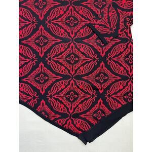 Joan Vass New York Sweater Womens Size S Black And Red Jacquard Knit Asymmetrical Hem 3/4 Long Sleeve Sophisticated Modern