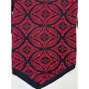 Joan Vass New York Sweater Tunic Size S Black Red Jacquard Asymmetrical Hem