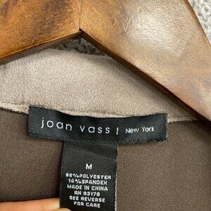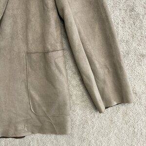 Joan Vass New York Women's M Open Front Blazer Jacket Taupe Raw hem Faux Suede