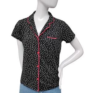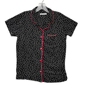 Joan Vass Pajama Tops Size Medium Black and White Polka Dot Button Down