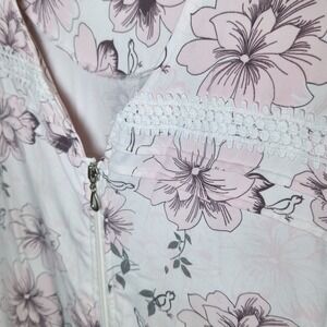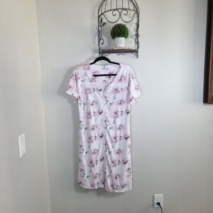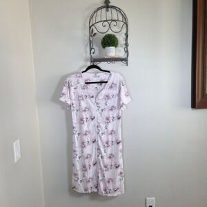 Joan Vass Pink Floral Short Sleeve Zip Front Lounger Dress Women's Medium