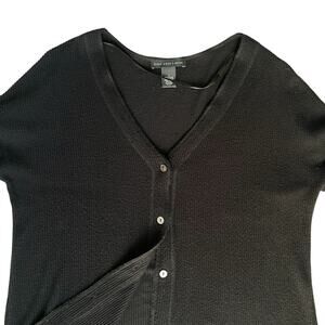 Joan Vass Ribbed Cardigan Womens Large Black Button Down Everyday Casual Sweater