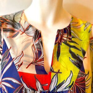 Joan Vass SZ M Tropical Patchwork Print Shift Dress Resort Travel Office Comfy