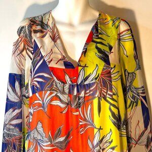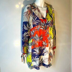 Multi color tropical patchwork print dress, pullover shift cut