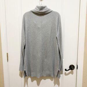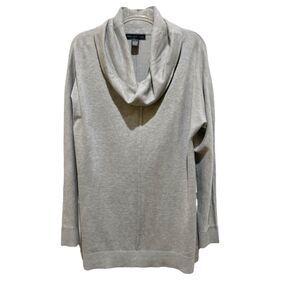 Joan Vass Sweater Gray Grey Cowl Neck Long Line Tunic Length Knit Size Large