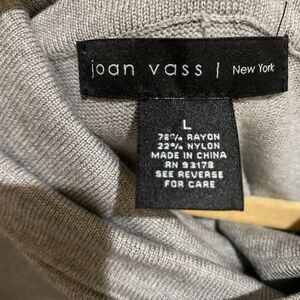 This elegant Joan Vass sweater is perfect for any fashion-forward woman. The neutral gray color makes it easy to match with any outfit, while the cowl neck and long sleeves add a touch of elegance. The tunic length and knit fabric type make it a must-have for any sweater collection. Available in size large, this sweater is perfect for anyone looking for a high-quality and fashionable addition to their wardrobe.