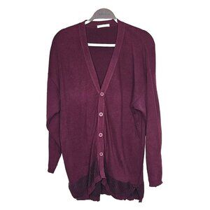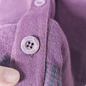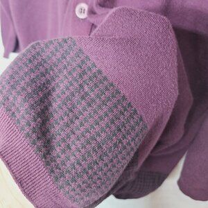 Joan Vass Sweater Purple Tunic Cardigan Pockets Long Sleeves Knit Houndstooth 2