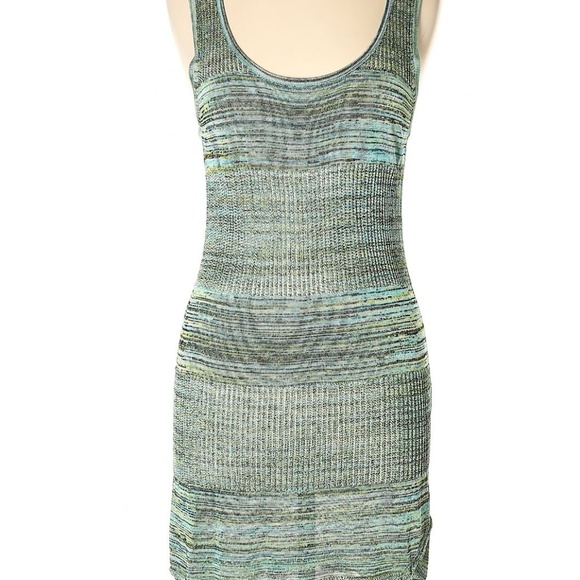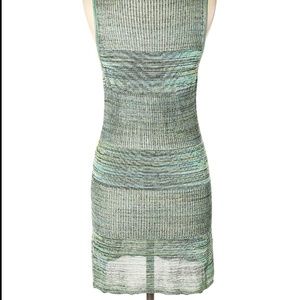 NWOT Joan Vass L tank dress in varying shades of greens and blues. 100% Rayon, a very lightweight sweater like knit. This sheath is shear (can see in pic) so could be worn with a slip or with a cute bralette and shortie or even as a classy swimsuit coverup for vaca. You can definitely go dressy or casual with the high quality of this dress. I wish pictures better showed the colors and pattern and the movement and sheen in this beautiful fabric. 30" chest, 35" length.
