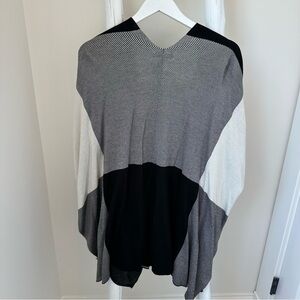Joan Vass Theodora Black and Ivory Colorblock Poncho Wrap Sweater SZ S/M