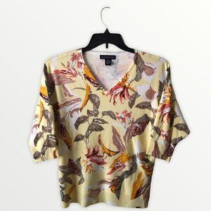Joan Vass V-Neck Elbow-Sleeve Top