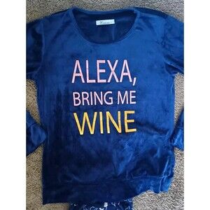 Joan Vass Velour Pajama Set Sz Large Blue Alexa Bring Me Wine 2 Piece Wine Heart