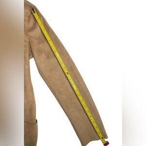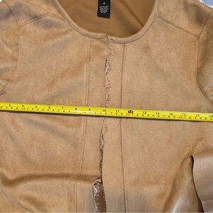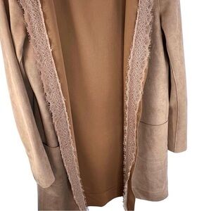 Joan Vass Women's Soft Faux Suede Carmel Cardigan in size M This lightweight coat features beautiful eyelash lace along the opening minimalistic. Oversized.