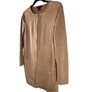 Joan Vass Womens M Soft Faux Suede Cardigan Carmel Long Coat Minimalistic