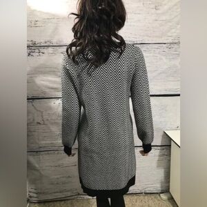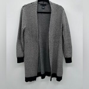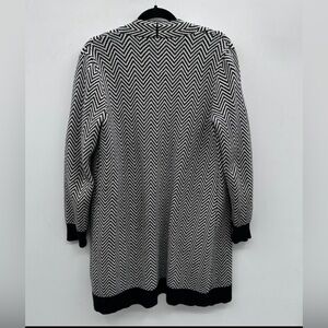 Joan Vass black/white chevron mid length open classic career front cardigan M