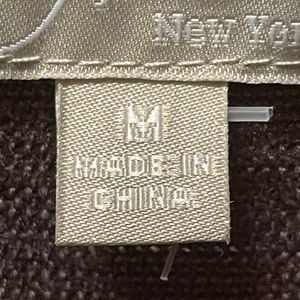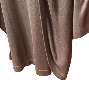 In excellent condition Joan Vass 32 inch long open front cardigan in gray, rounded front corners, about a 1 inch trimming along all edges, size medium