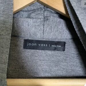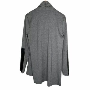Joan Vass Womens Cardigan Size Medium Open Front Faux Leather Detail Black White. Condition is Pre-owned. Shipped with USPS Priority Mail. Ships fast!! Smoke free pet free home.