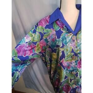 Joan Walter's Floral Reversible Windbreaker Jacket. Solid Purple/Blue on one floral on the other.