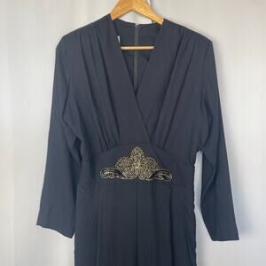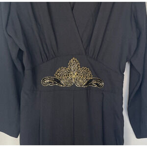 Joan Walters Vintage Jumpsuit Size 12 Black Solid Gold Beaded Retro Disco 80s