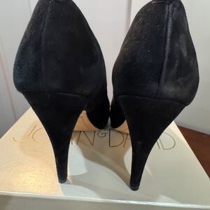 Joan and David DAFELICITA BLACK Suede Platform Peep Toe Heels
