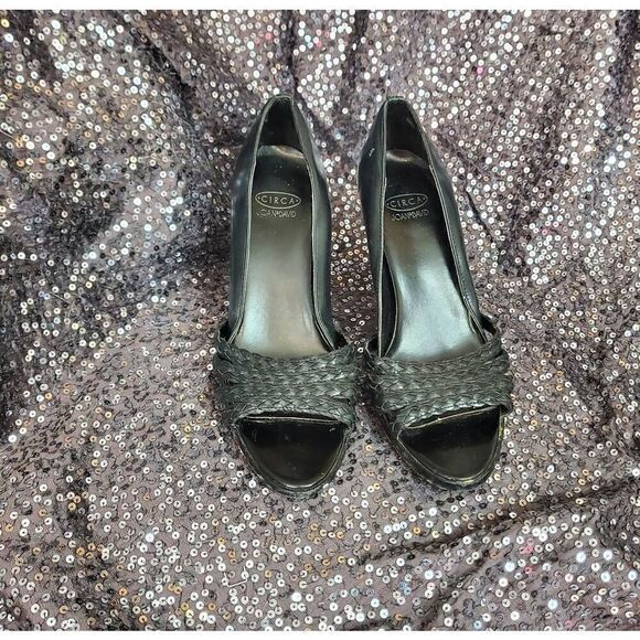 Black leather peep toe 3 inch heel. Small knick in heel. See pics