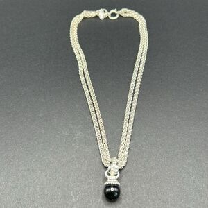 This elegant necklace features a stunning black beaded pendant on a sleek silver chain. Perfect for adding a touch of sophistication to any outfit.