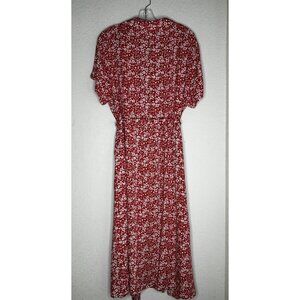 Joanie Dress Womens 16 Red Baked Apple Cary Ditzy Wrap Floral V Neck Tie Waist