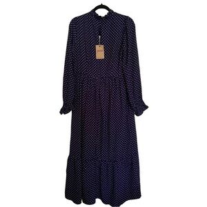 Joanie Navy Blue Corina Polka Dot Print Midaxi Dress Size US 8