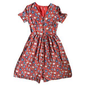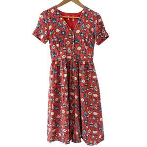 Joanie x Molly Hatch Tea Pot Fit & Flare Button Front Shirt Dress Size Small
