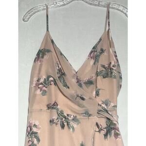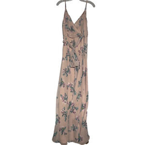Joanna August Chiffon Maxi Wrap Gown M Pink Floral Flowy Dress Bridal Formal
