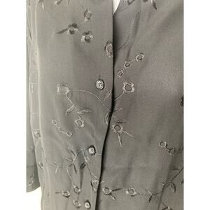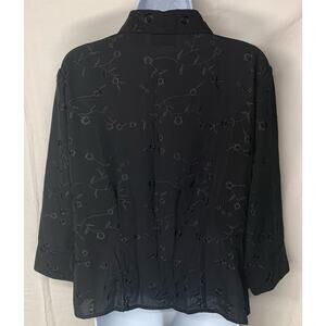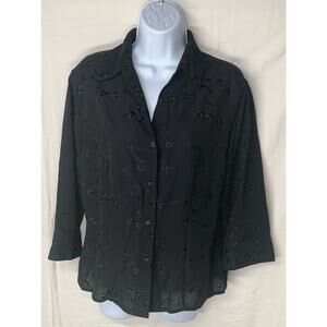 Joanna Blouse Womens Medium Black Button Up Polyester 3/4 Sleeve No Pocket Shirt