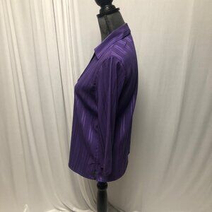 Joanna Blouse Womens Size Small Purple Silver Metallic Button Up Shirt