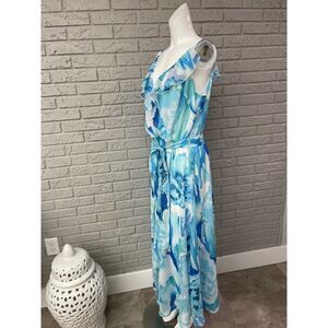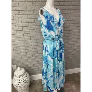Joanna Hope Blue Spaghetti Strap Waist Tie Maxi Dress Size 18