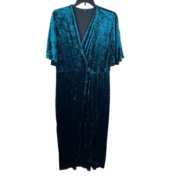 Joanna Hope Teal Crushed Velvet Wrap 20 Midi Dress Short Sleeve Holiday Party